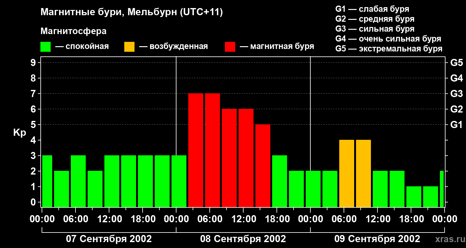 Магнитные бури в Мельбурне 9 сентября 2002 года