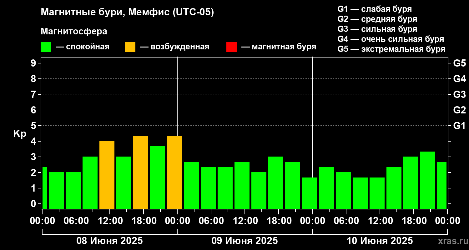 Магнитные бури в Мемфисе — 10 июня 2025 года