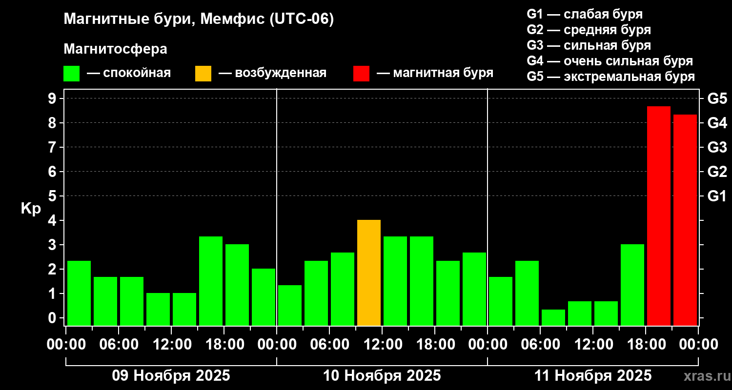 Магнитные бури в Мемфисе — 11 ноября 2025 года