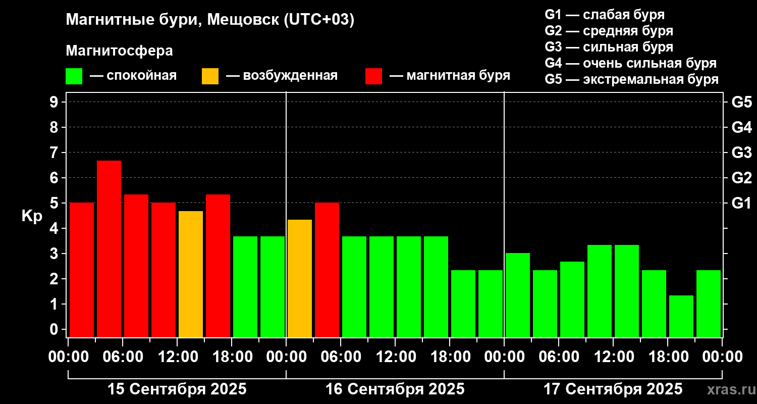 Магнитные бури в Мещовске — 17 сентября 2025 года