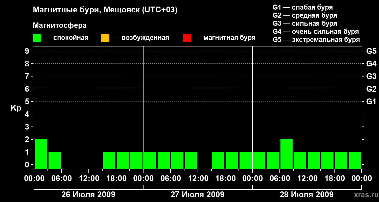Магнитные бури в Мещовске 28 июля 2009 года