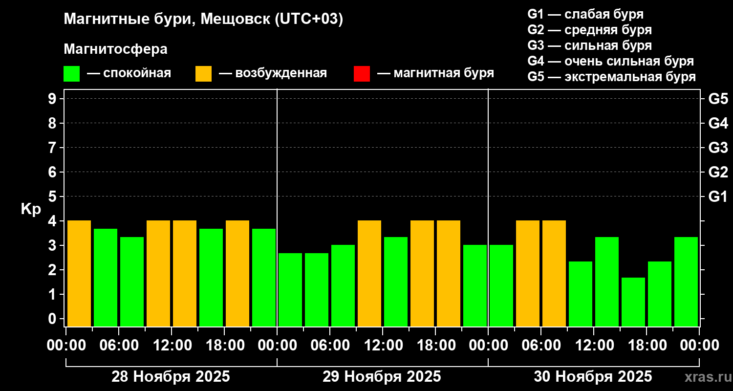 Магнитные бури в Мещовске — 30 ноября 2025 года