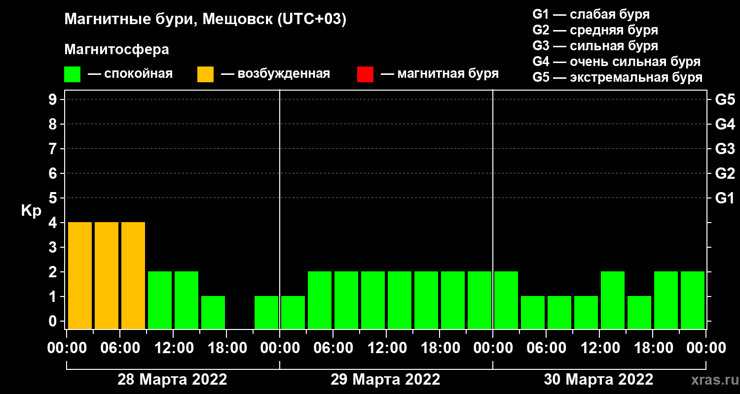 Магнитные бури в Мещовске — 30 марта 2022 года