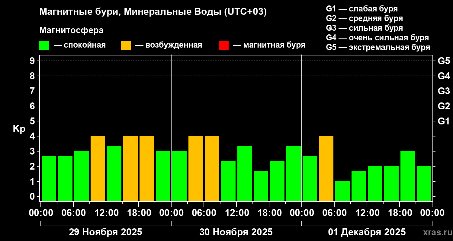 Магнитные бури Минеральных Водах 1 декабря 2025 года