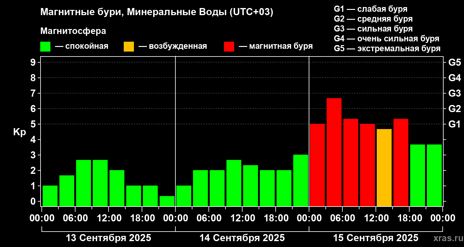 Магнитные бури Минеральных Водах — 15 сентября 2025 года