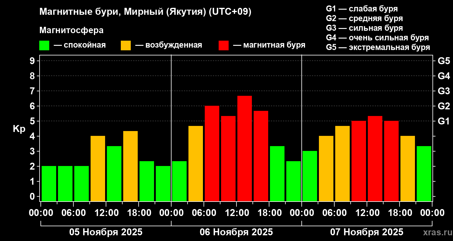 Магнитные бури Мирном (Якутия) — 7 ноября 2025 года