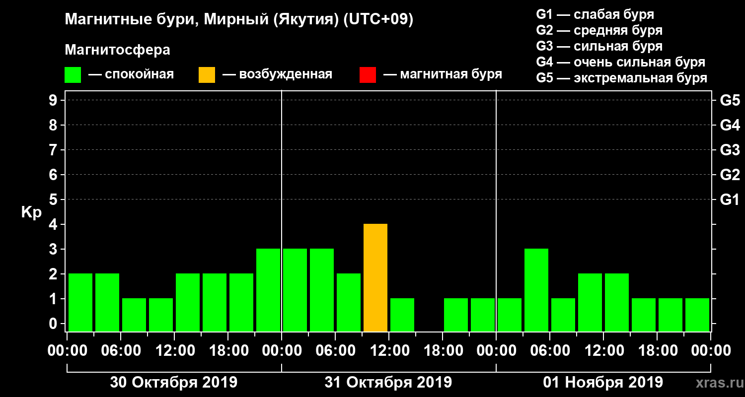 Магнитные бури Мирном (Якутия) — 1 ноября 2019 года