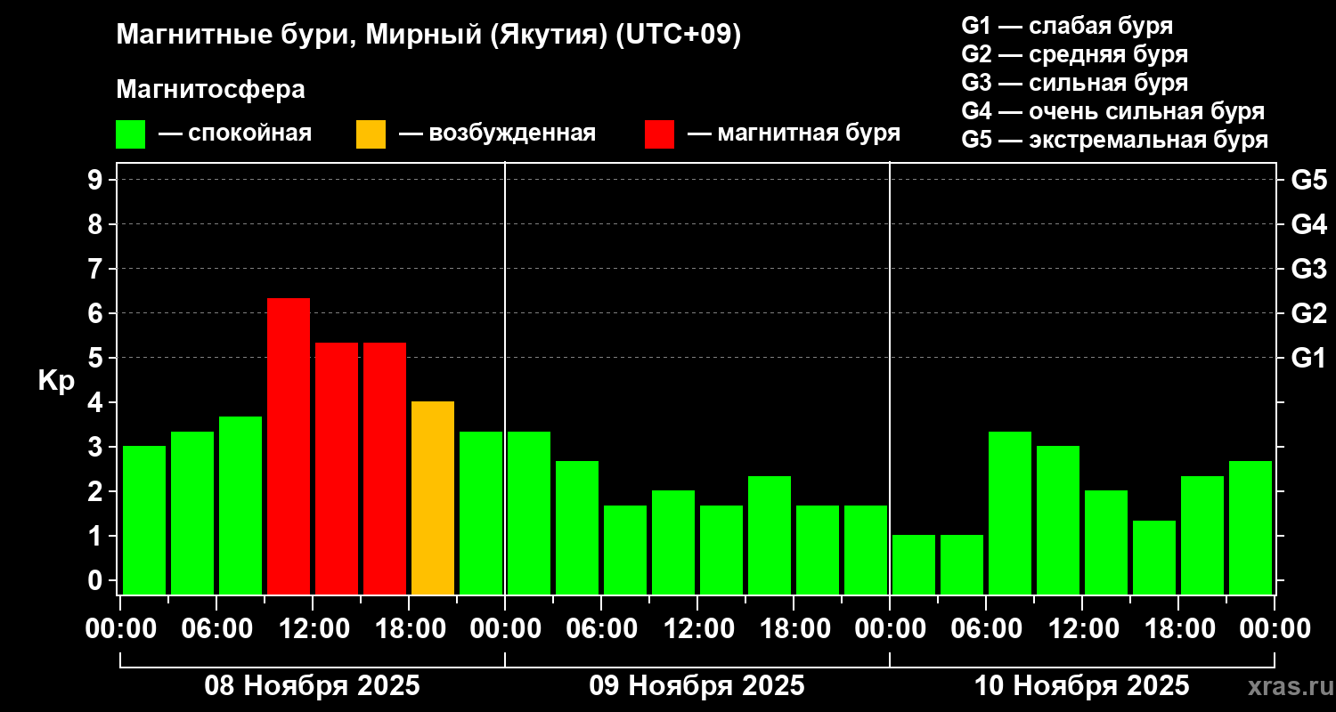 Магнитные бури Мирном (Якутия) — 10 ноября 2025 года