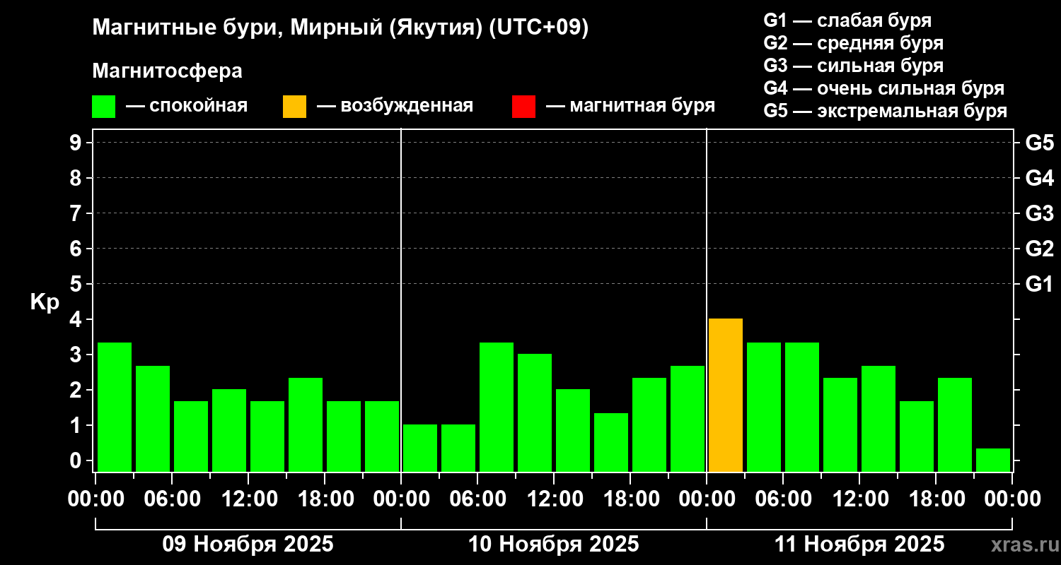 Магнитные бури Мирном (Якутия) — 11 ноября 2025 года
