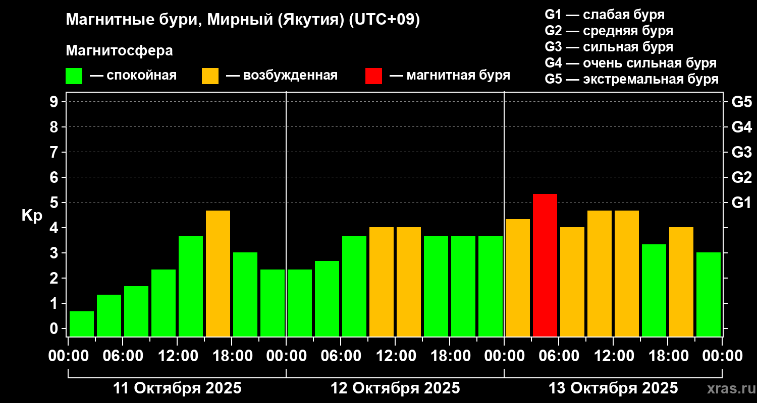 Магнитные бури Мирном (Якутия) — 13 октября 2025 года
