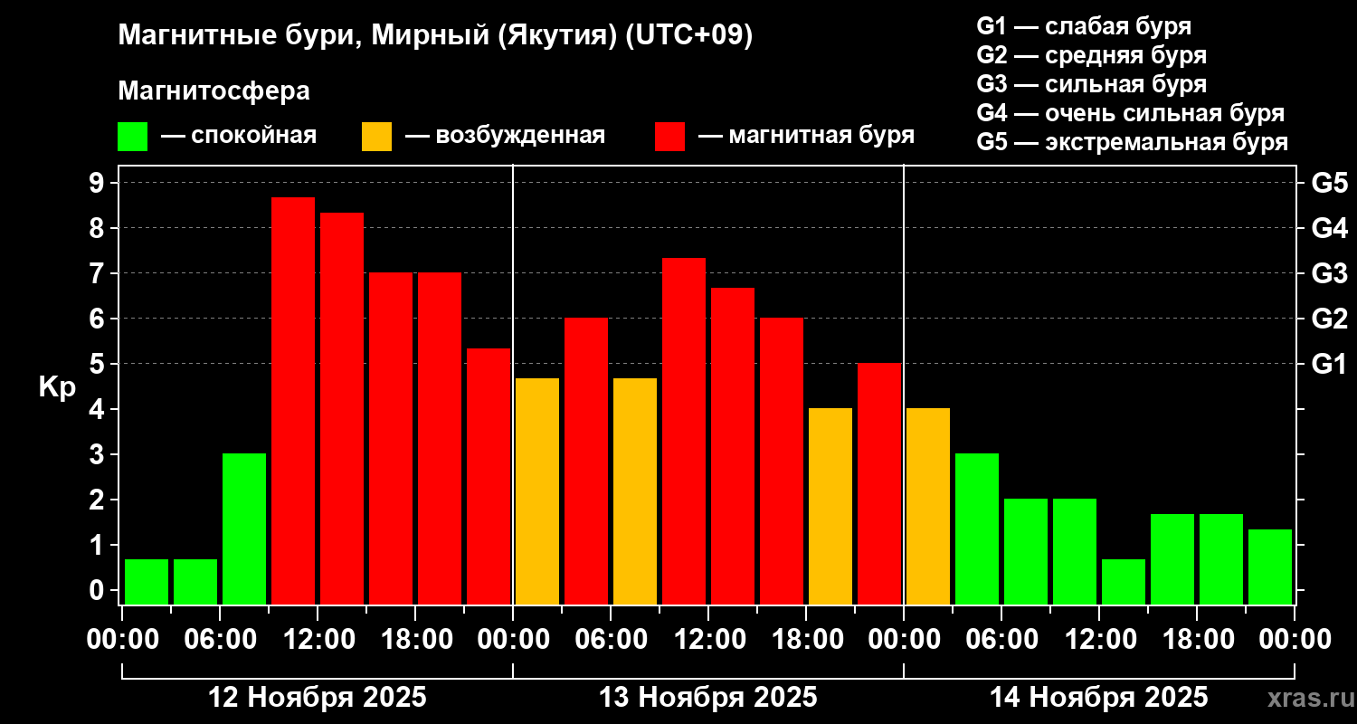 Магнитные бури Мирном (Якутия) — 14 ноября 2025 года
