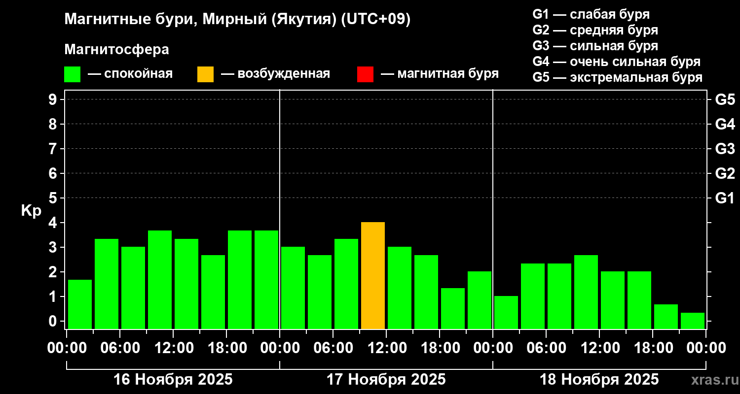 Магнитные бури Мирном (Якутия) — 18 ноября 2025 года