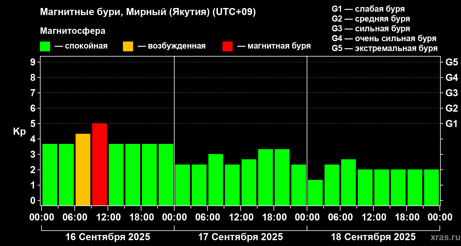 Магнитные бури Мирном (Якутия) 18 сентября 2025 года