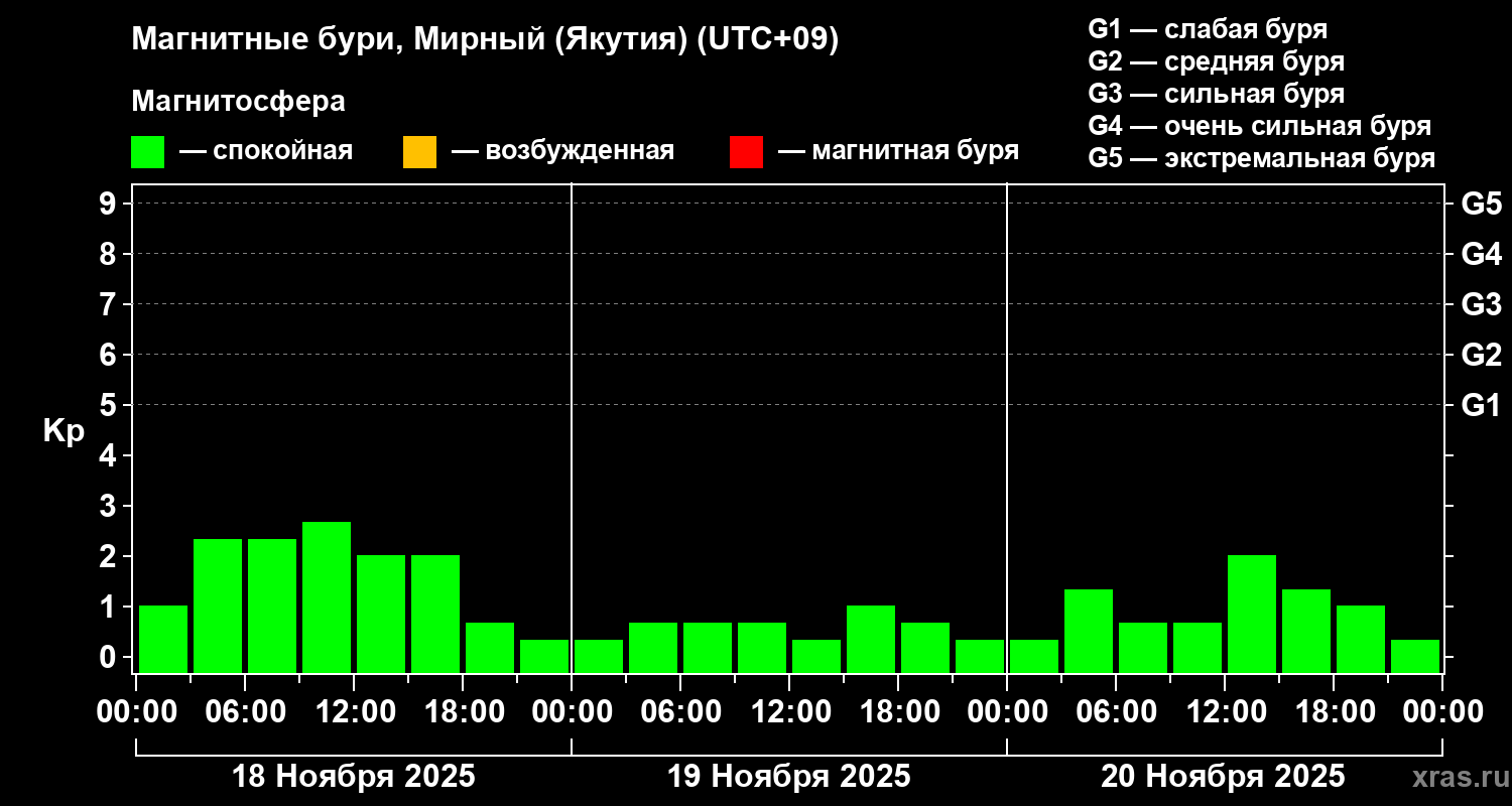 Магнитные бури Мирном (Якутия) — 20 ноября 2025 года