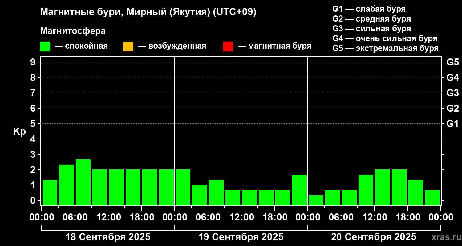 Магнитные бури Мирном (Якутия) 20 сентября 2025 года