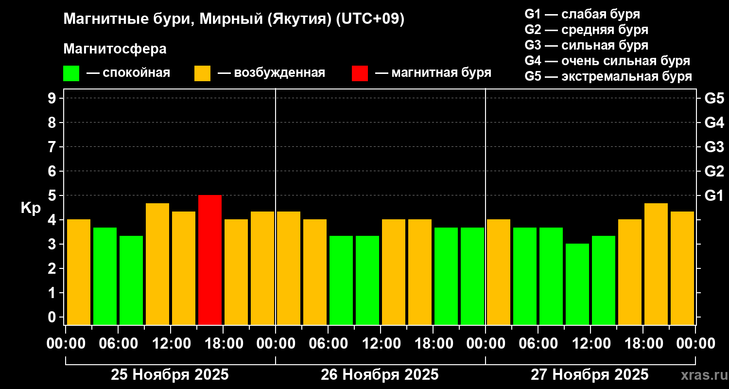 Магнитные бури Мирном (Якутия) 27 ноября 2025 года