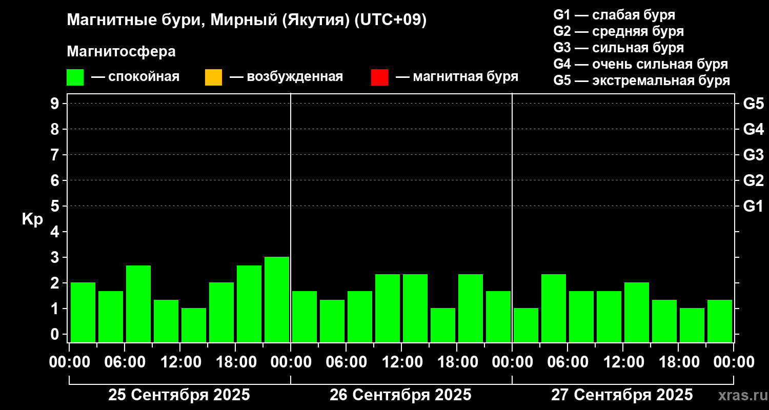 Магнитные бури Мирном (Якутия) 27 сентября 2025 года