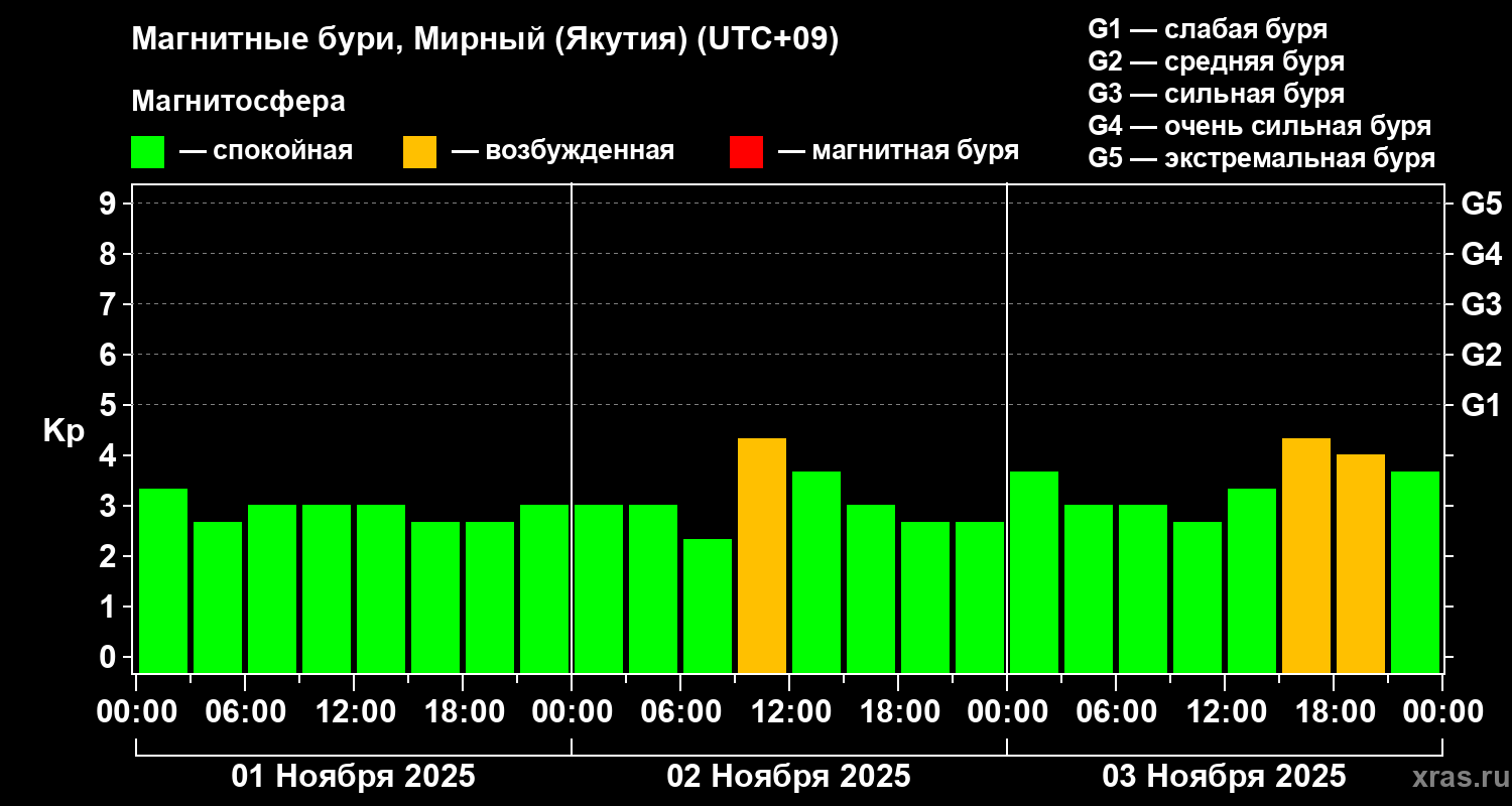 Магнитные бури Мирном (Якутия) — 3 ноября 2025 года