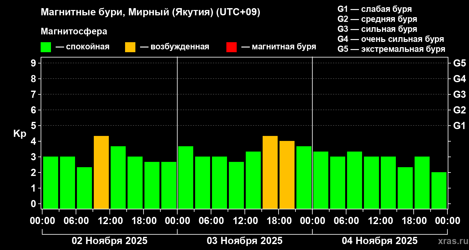 Магнитные бури Мирном (Якутия) — 4 ноября 2025 года