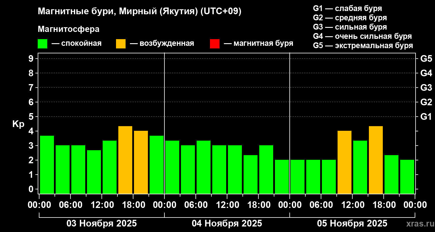 Магнитные бури Мирном (Якутия) — 5 ноября 2025 года