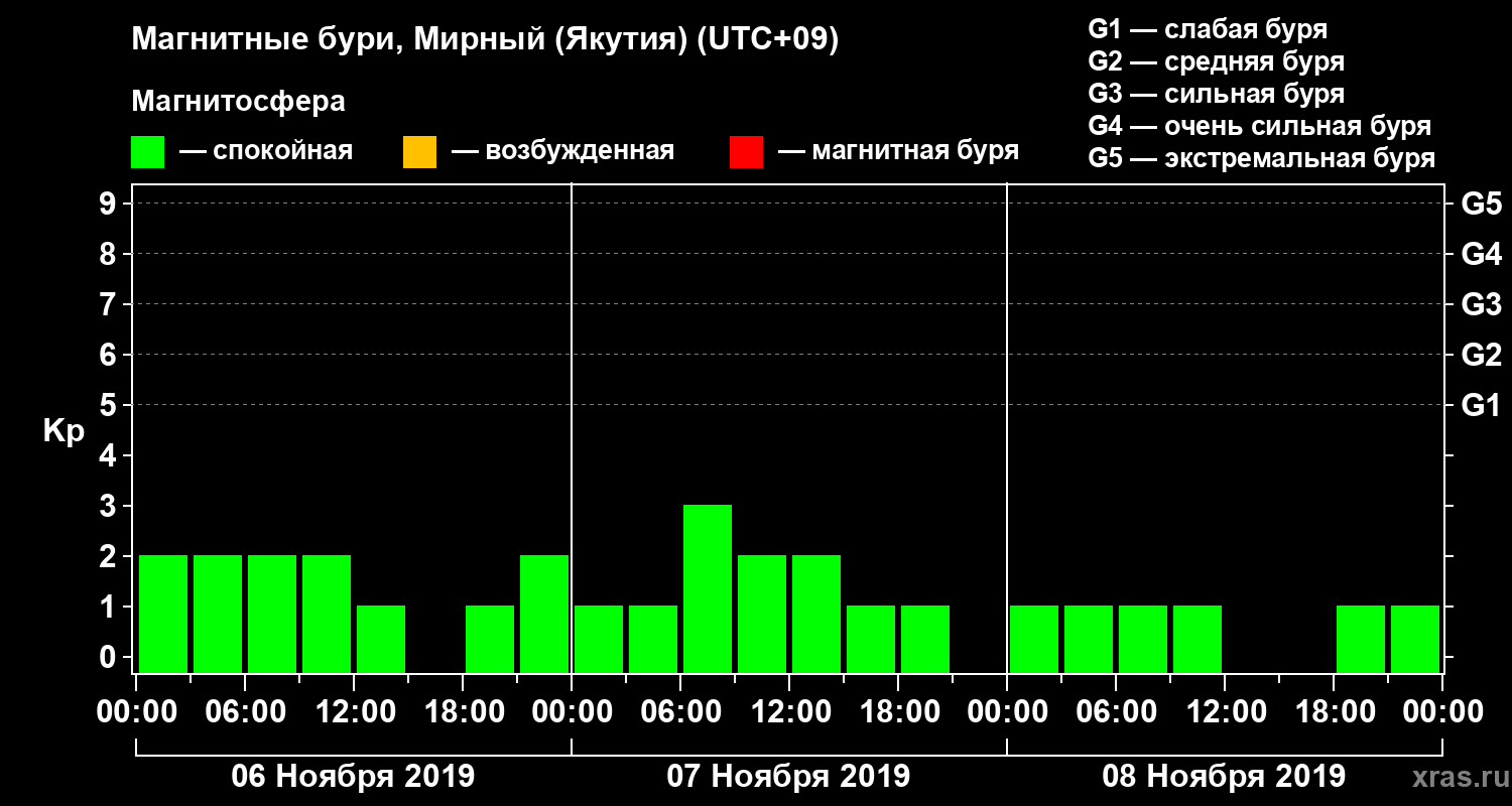 Магнитные бури Мирном (Якутия) — 8 ноября 2019 года