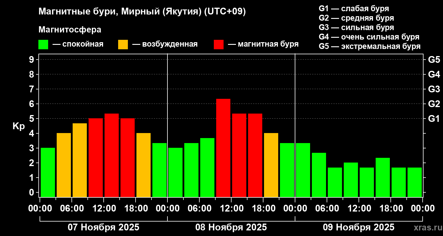 Магнитные бури Мирном (Якутия) — 9 ноября 2025 года