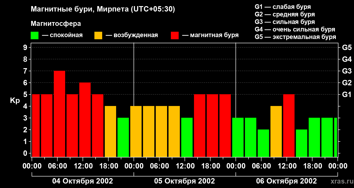 Магнитные бури в Мирпете — 6 октября 2002 года