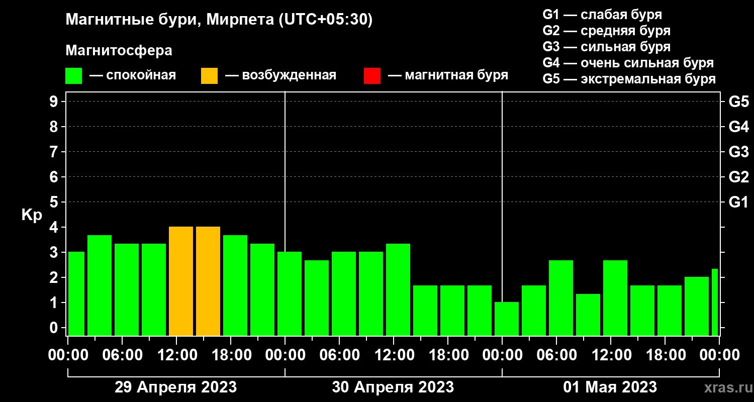 Магнитные бури в Мирпете — 1 мая 2023 года