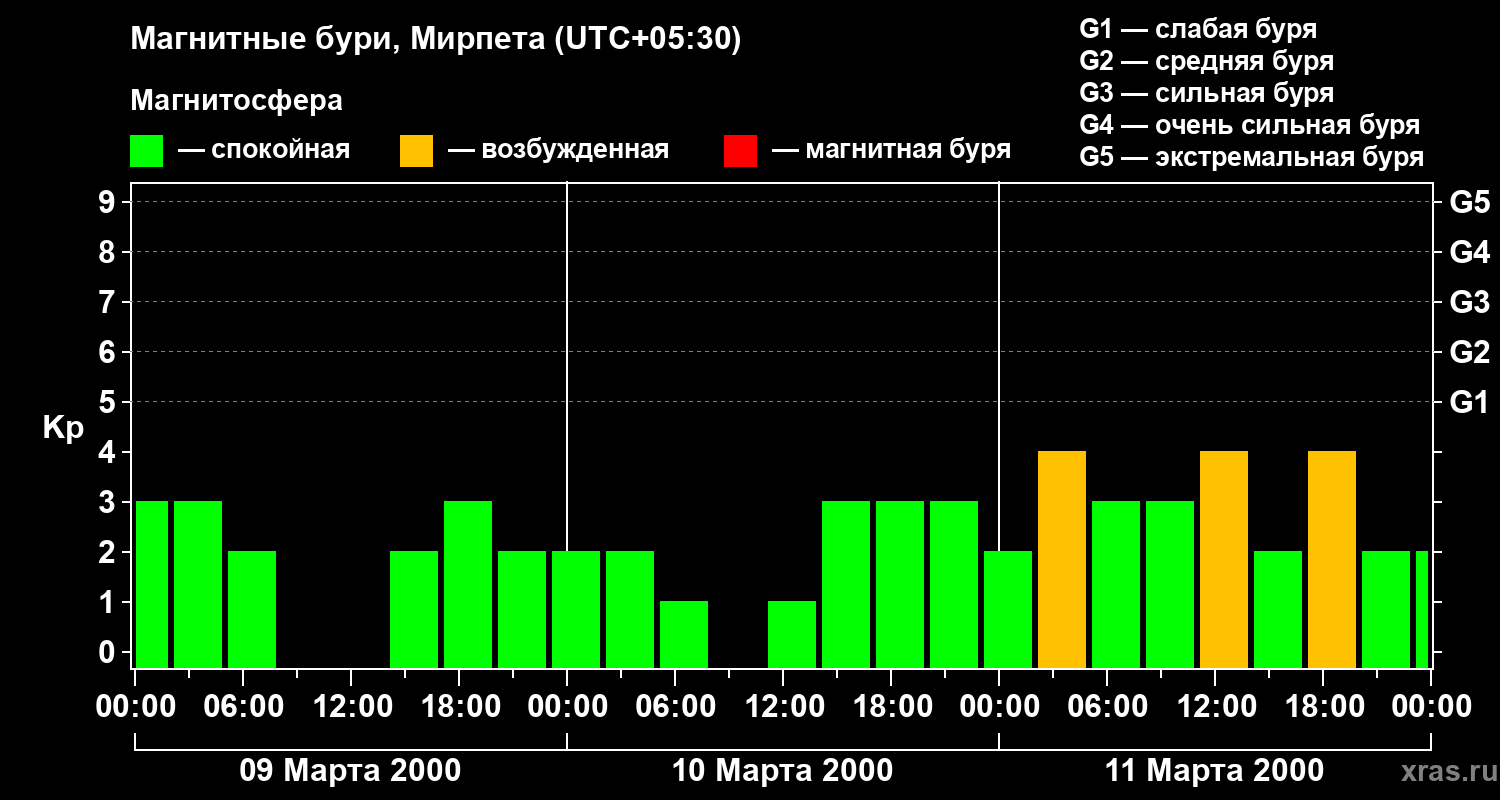 Магнитные бури в Мирпете — 11 марта 2000 года
