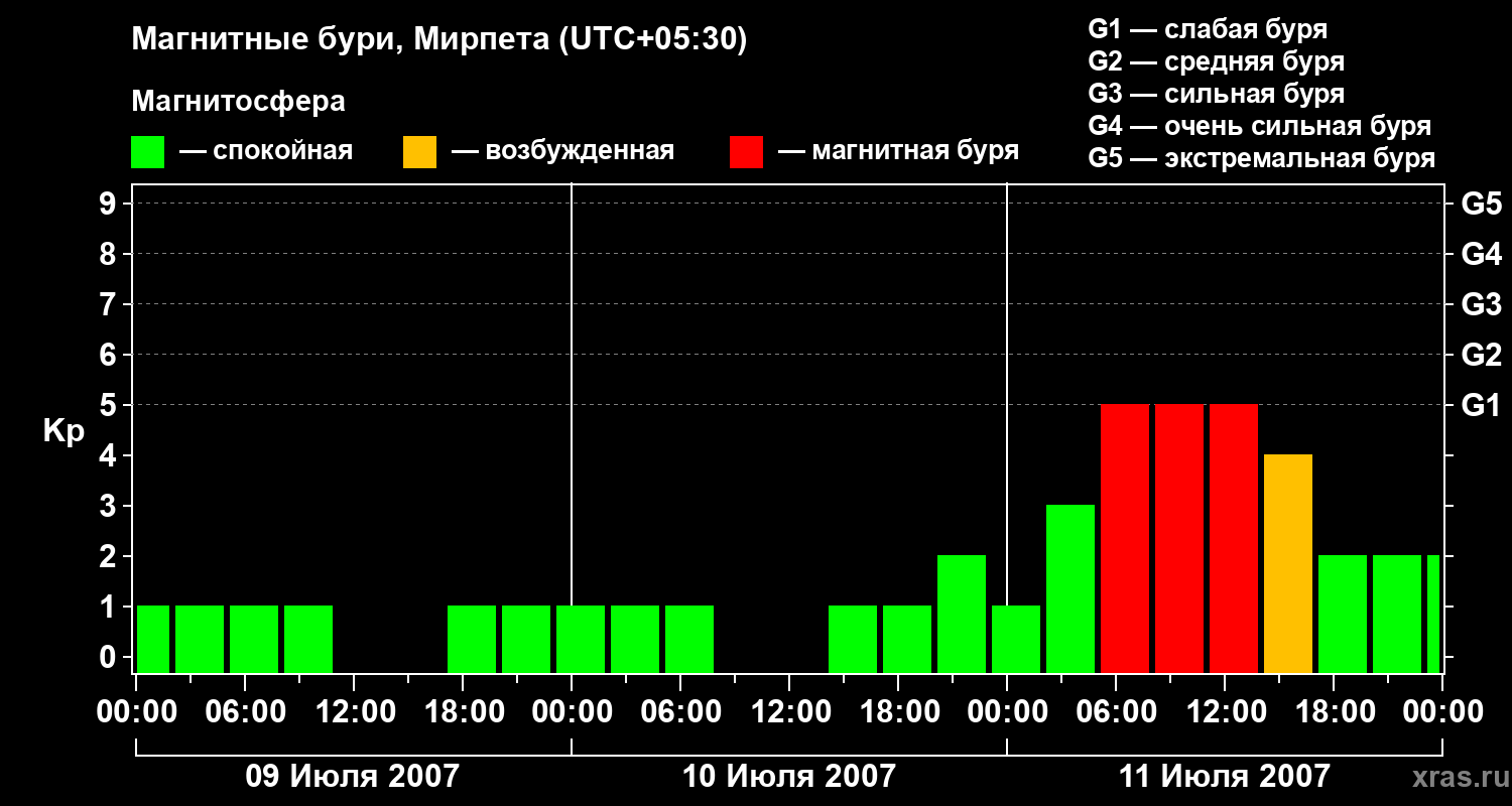 Магнитные бури в Мирпете 11 июля 2007 года