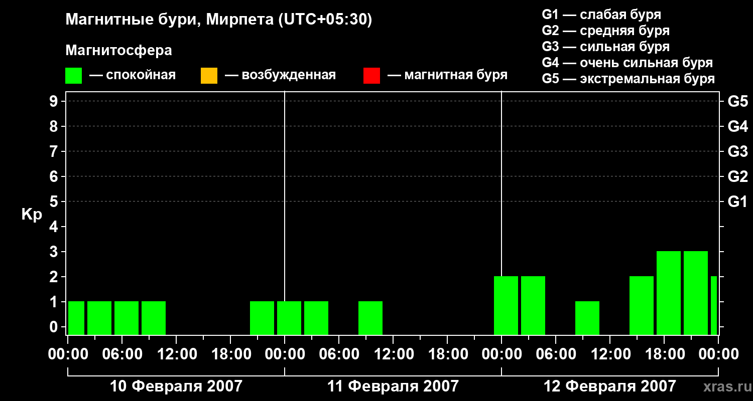 Магнитные бури в Мирпете — 12 февраля 2007 года