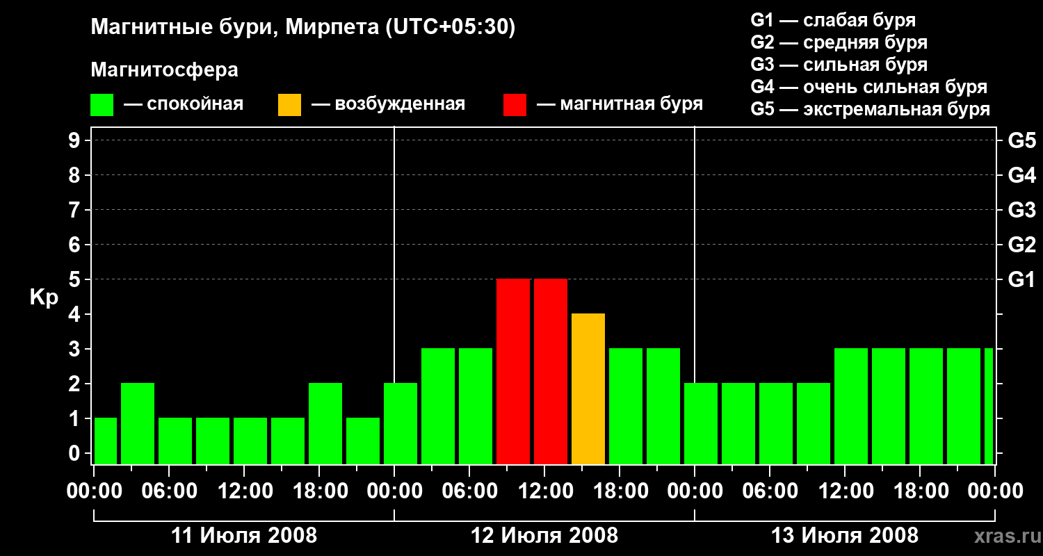 Магнитные бури в Мирпете 13 июля 2008 года