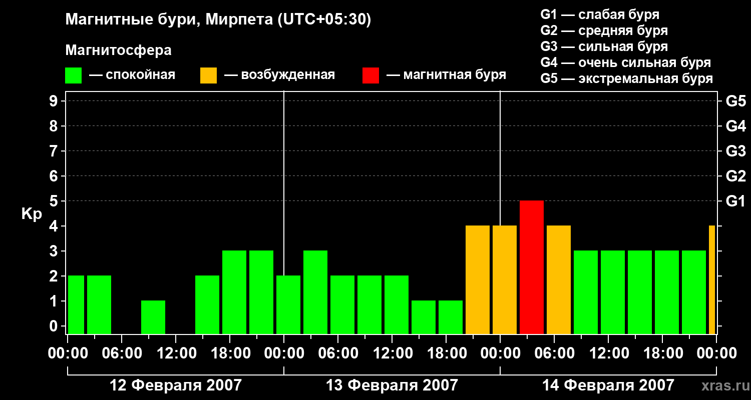 Магнитные бури в Мирпете — 14 февраля 2007 года