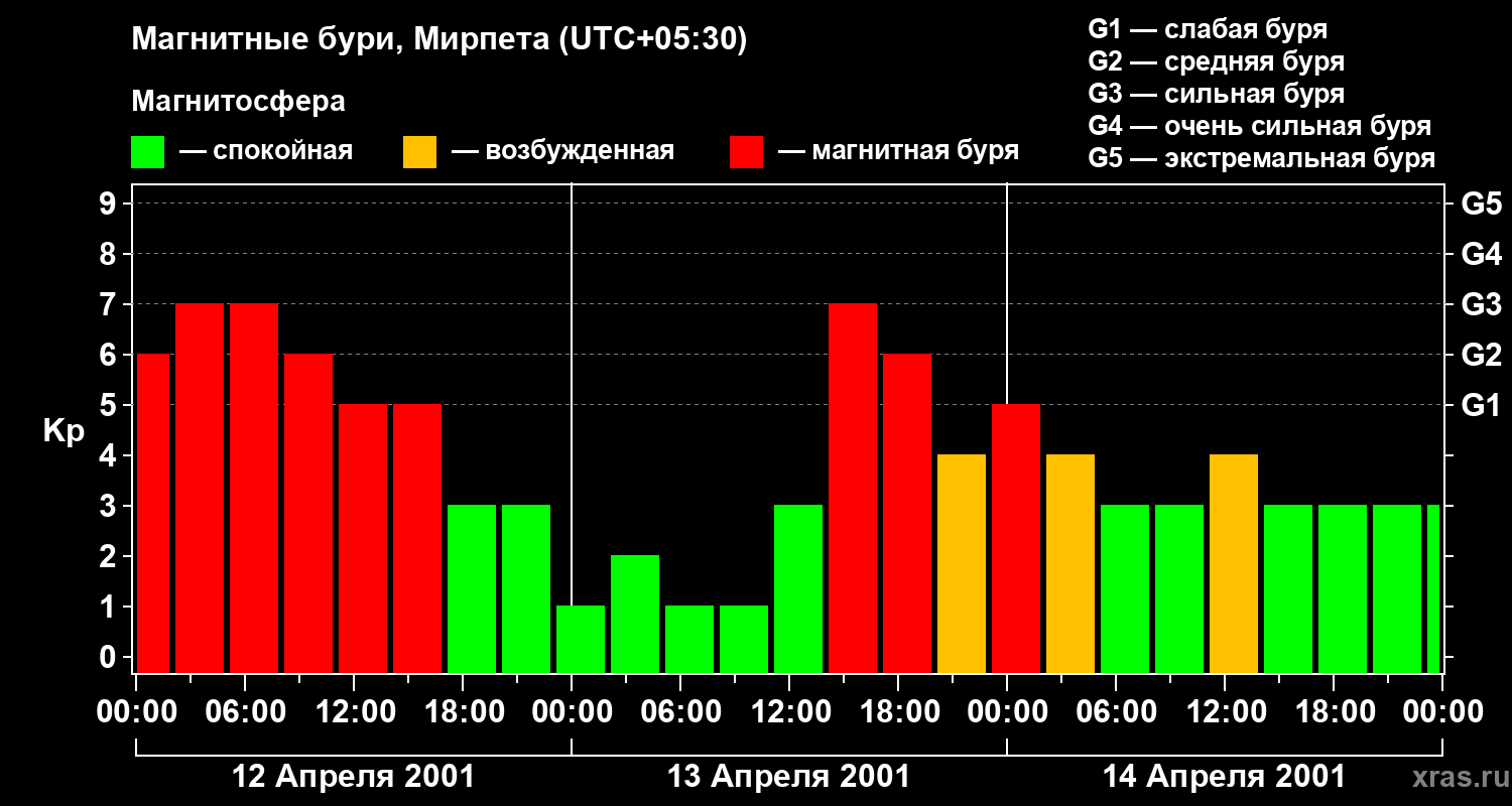 Магнитные бури в Мирпете 14 апреля 2001 года
