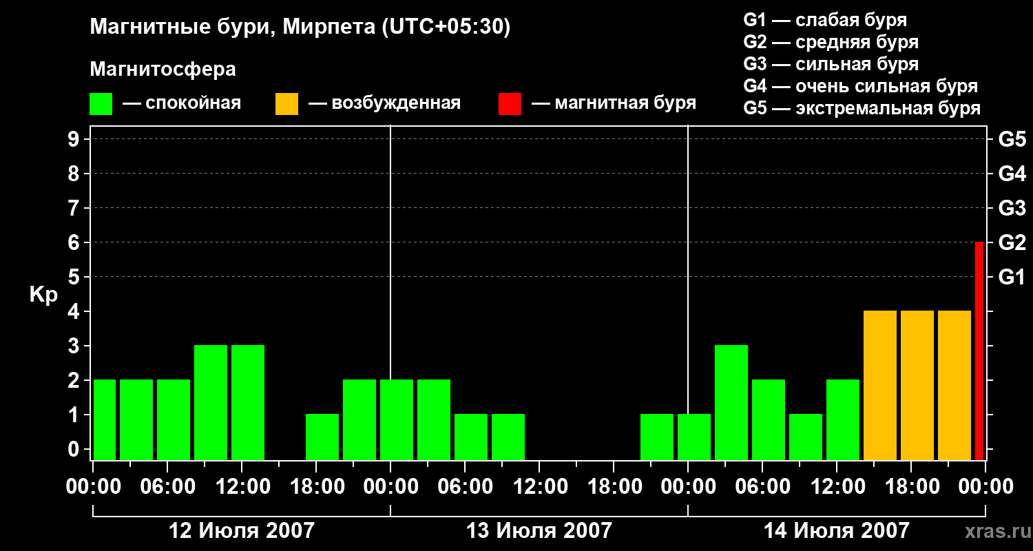 Магнитные бури в Мирпете — 14 июля 2007 года