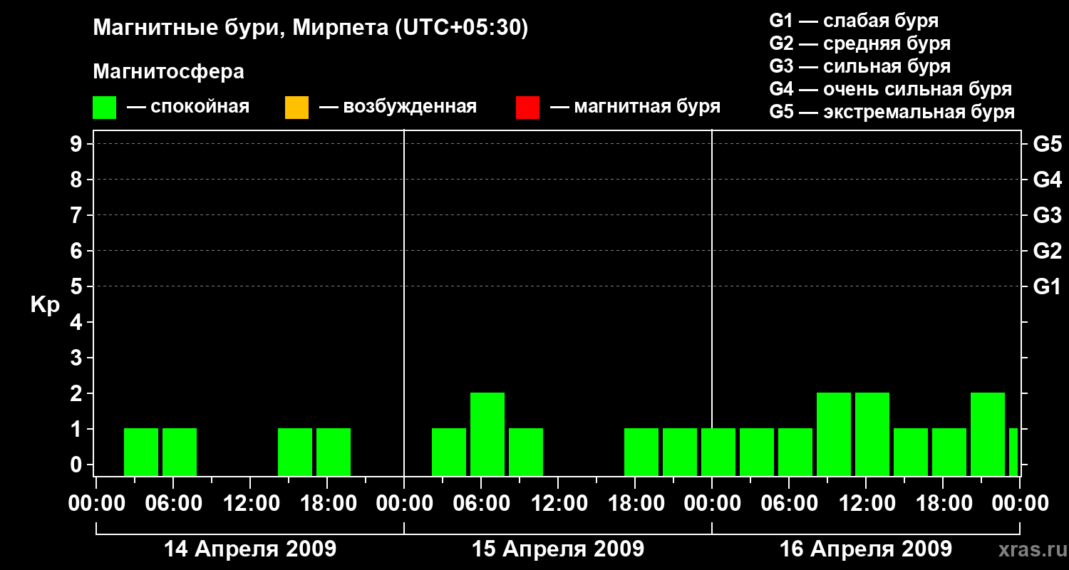 Магнитные бури в Мирпете 16 апреля 2009 года