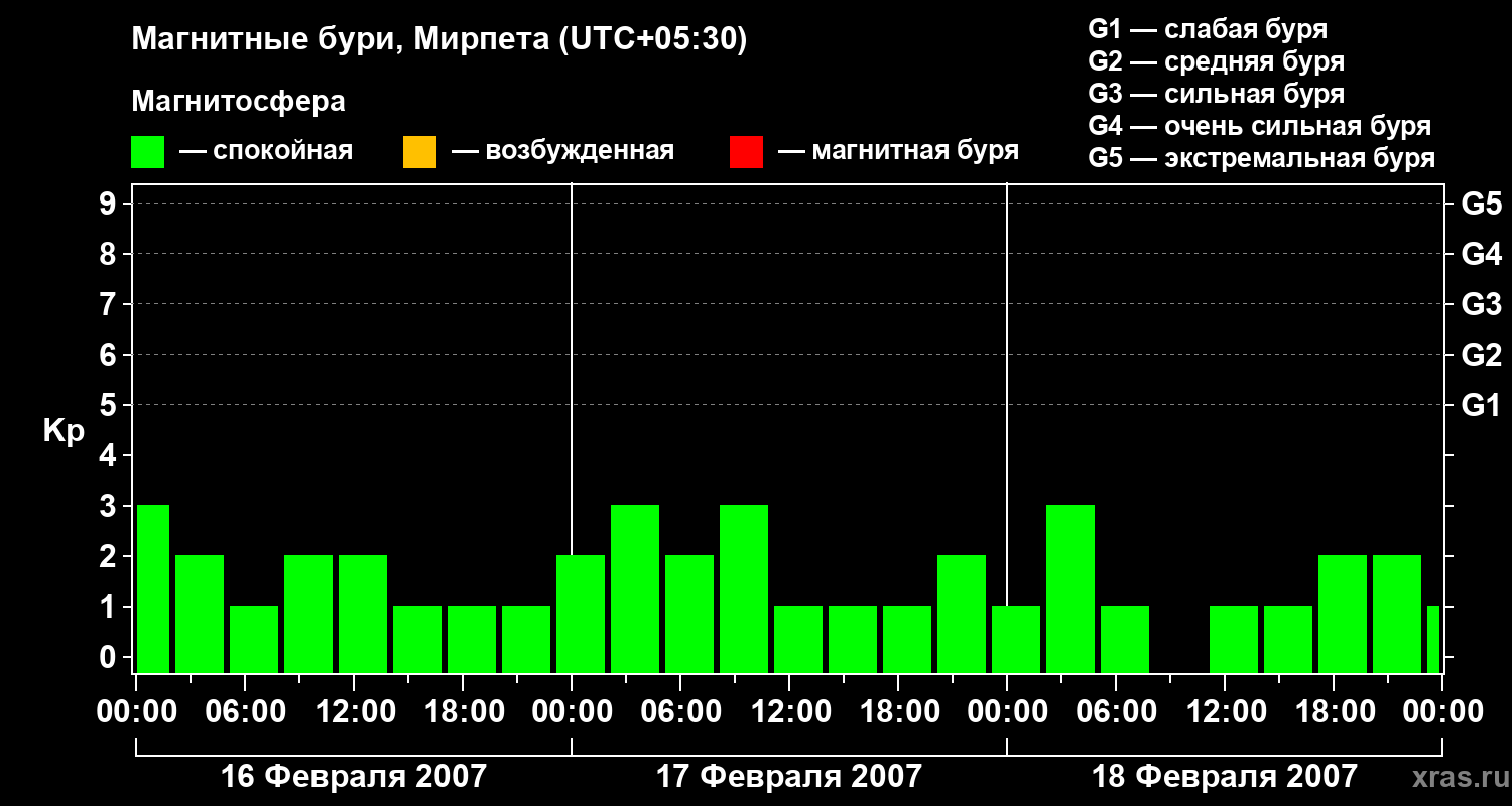 Магнитные бури в Мирпете — 18 февраля 2007 года