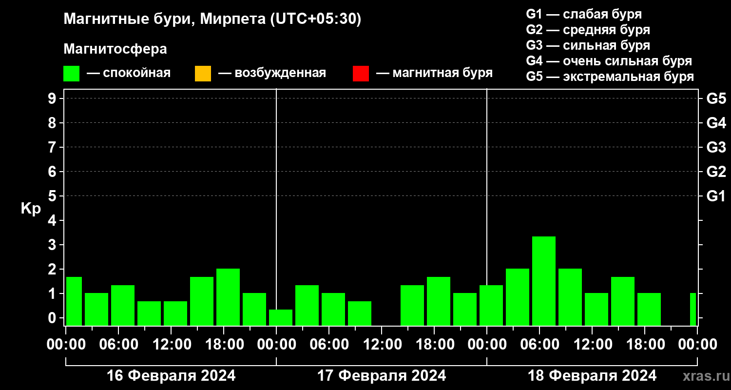 Магнитные бури в Мирпете — 18 февраля 2024 года