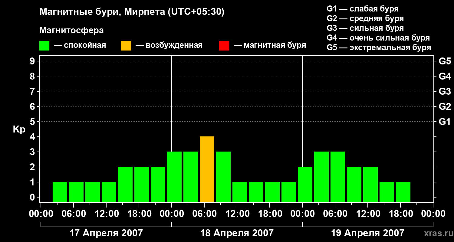 Магнитные бури в Мирпете — 19 апреля 2007 года