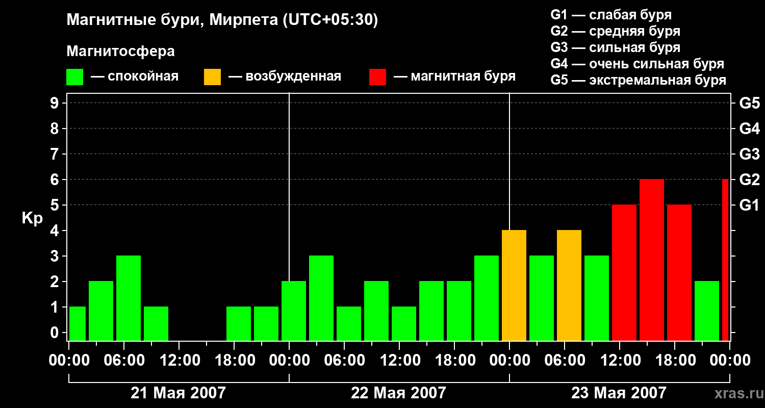 Магнитные бури в Мирпете 23 мая 2007 года