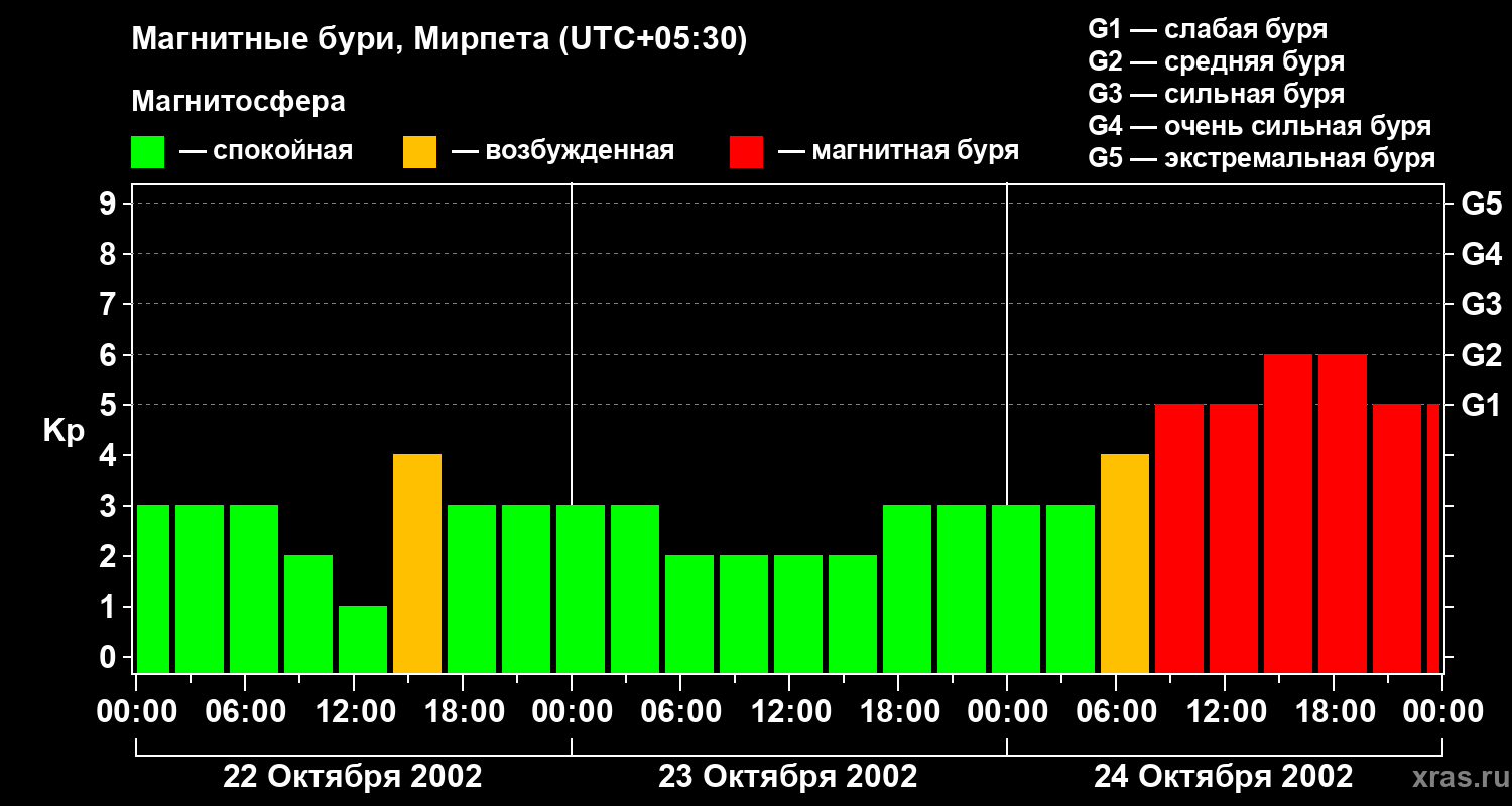 Магнитные бури в Мирпете — 24 октября 2002 года