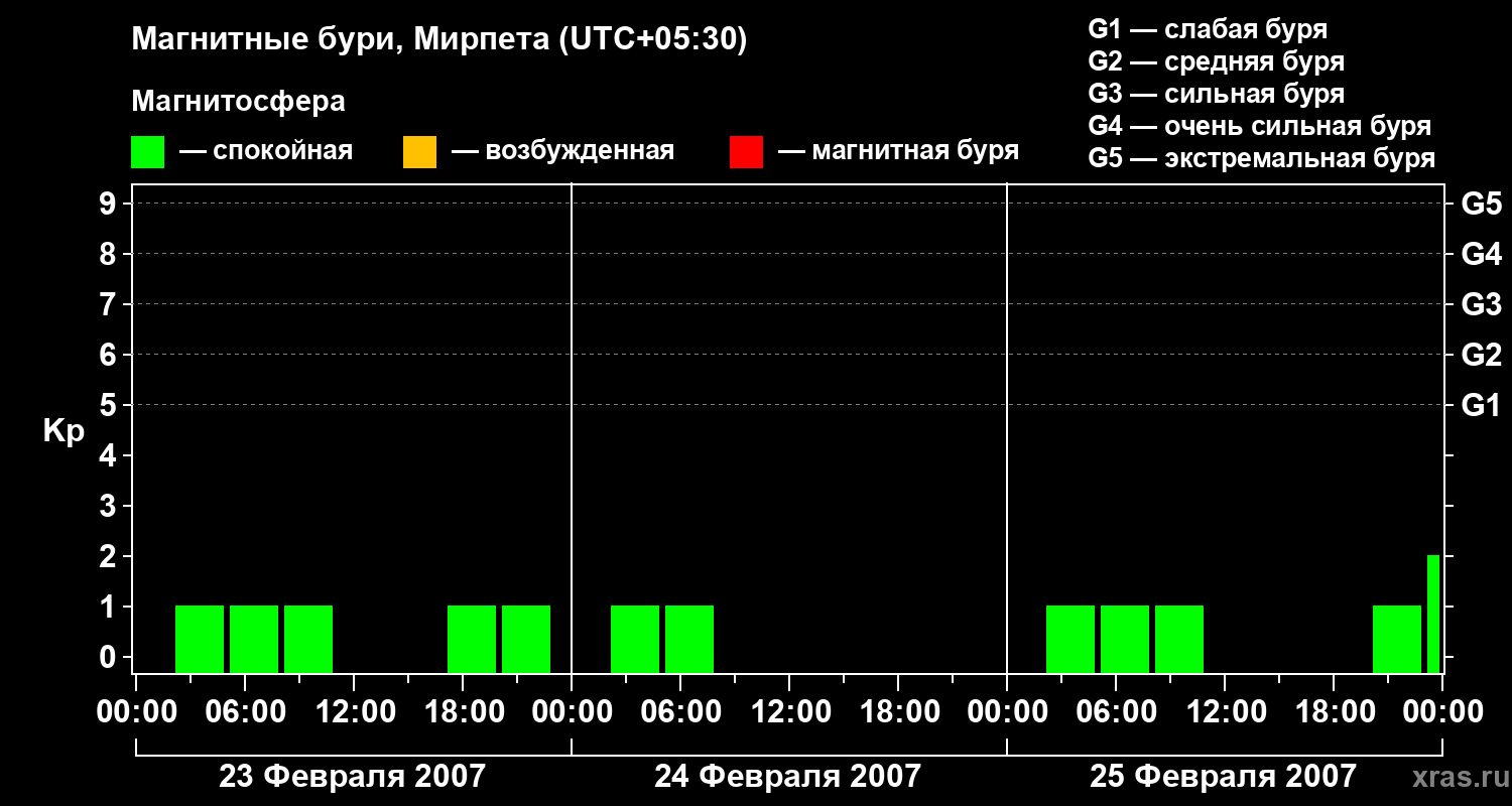 Магнитные бури в Мирпете 25 февраля 2007 года