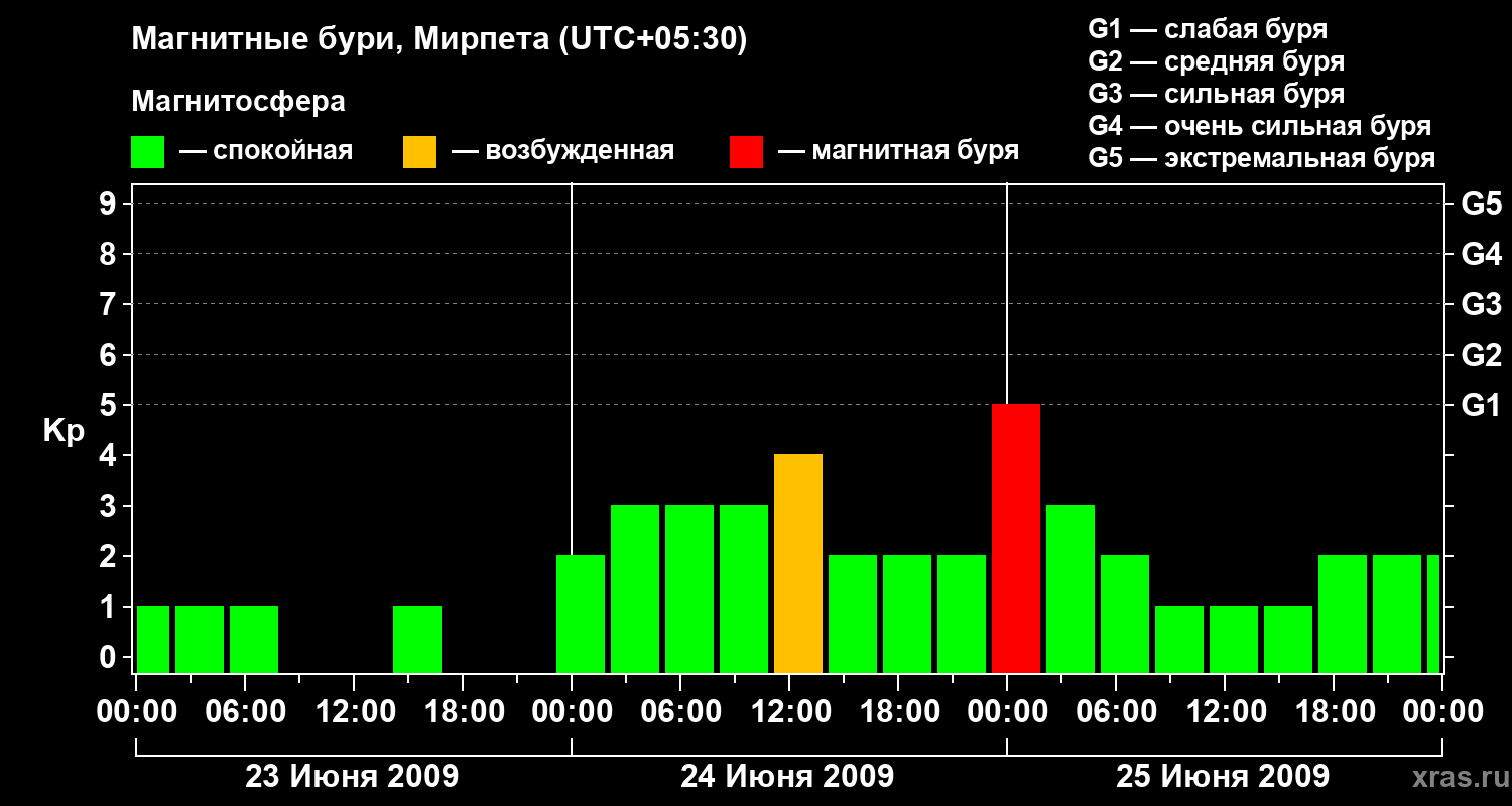 Магнитные бури в Мирпете — 25 июня 2009 года