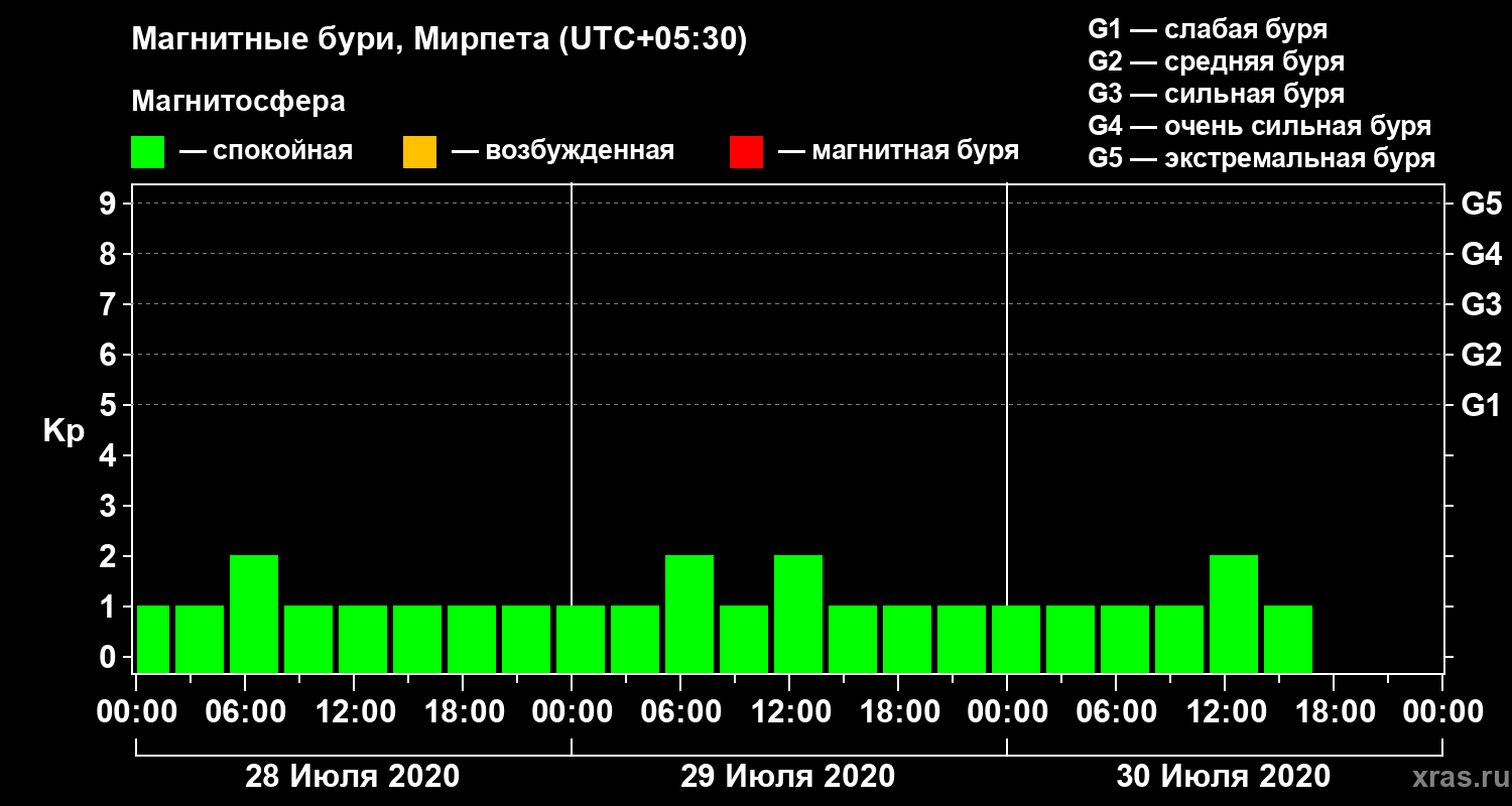 Магнитные бури в Мирпете — 30 июля 2020 года