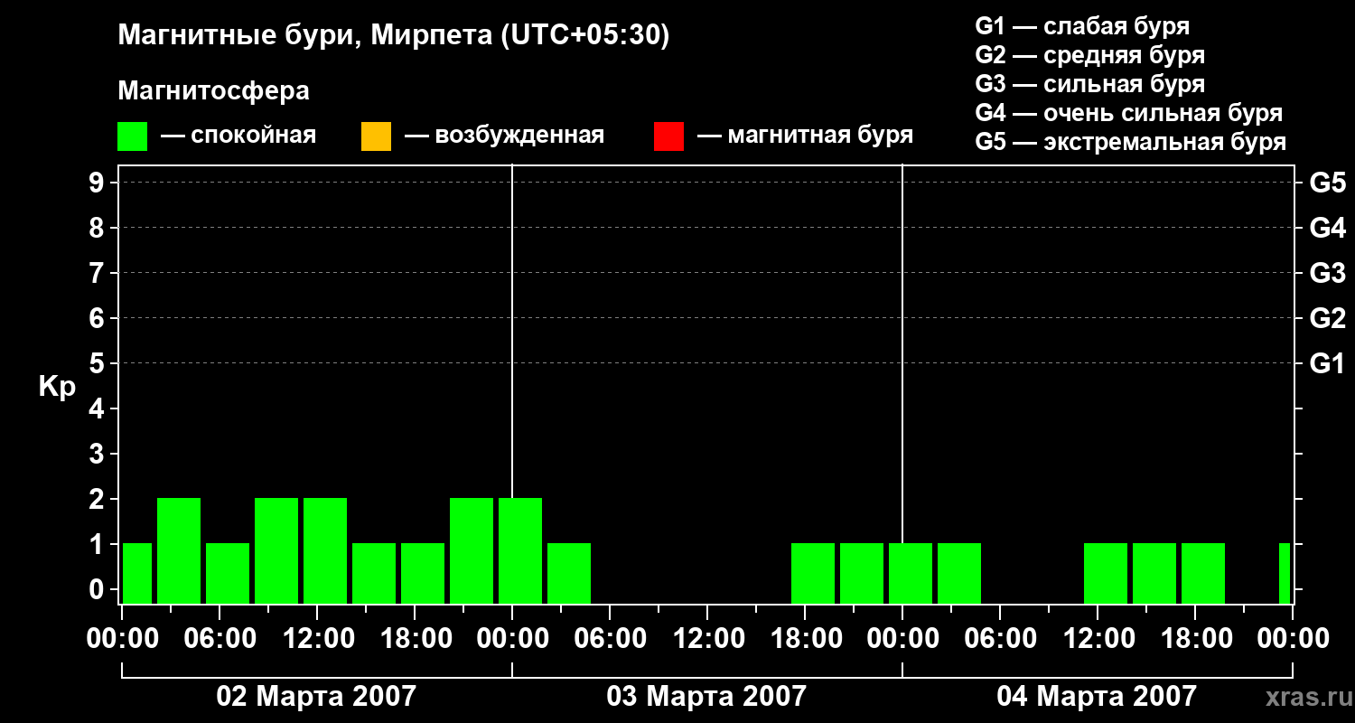 Магнитные бури в Мирпете — 4 марта 2007 года