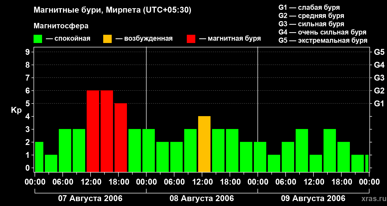 Магнитные бури в Мирпете — 9 августа 2006 года