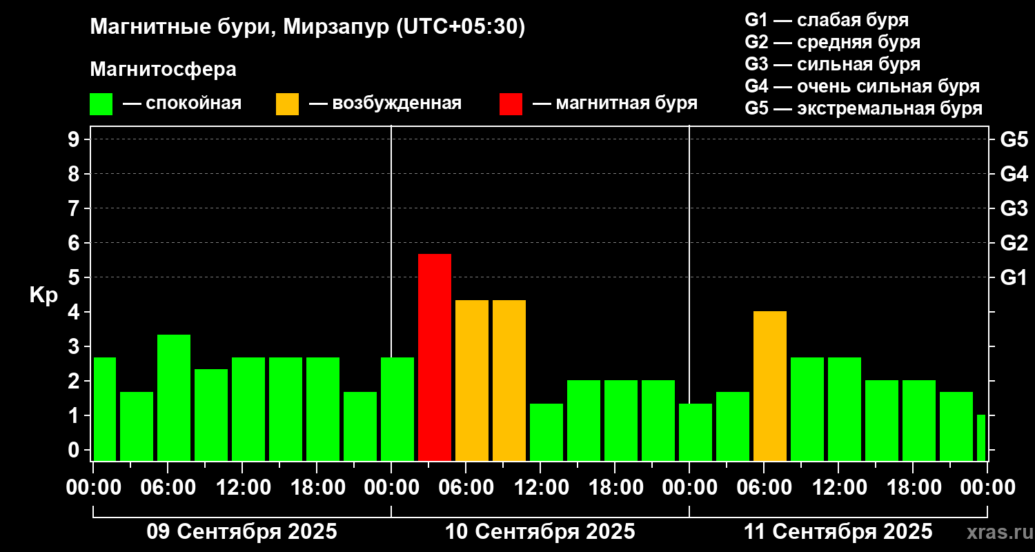 Магнитные бури в Мирзапуре 11 сентября 2025 года