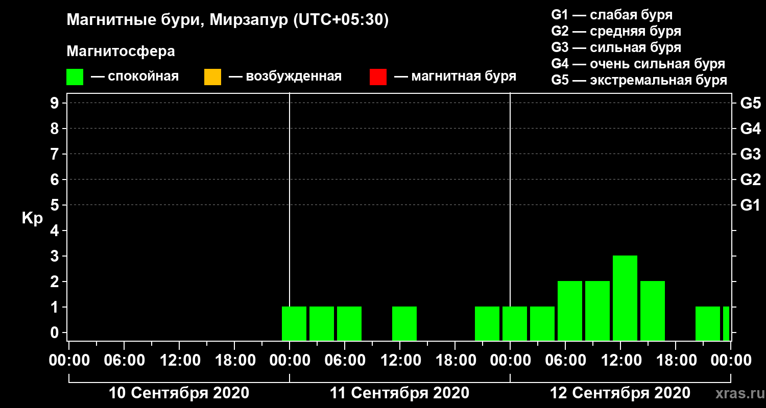 Магнитные бури в Мирзапуре 12 сентября 2020 года