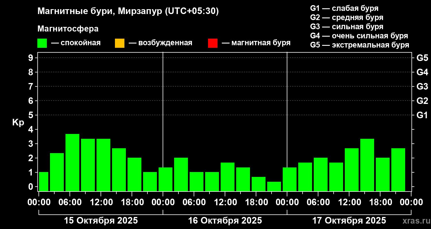 Магнитные бури в Мирзапуре 17 октября 2025 года