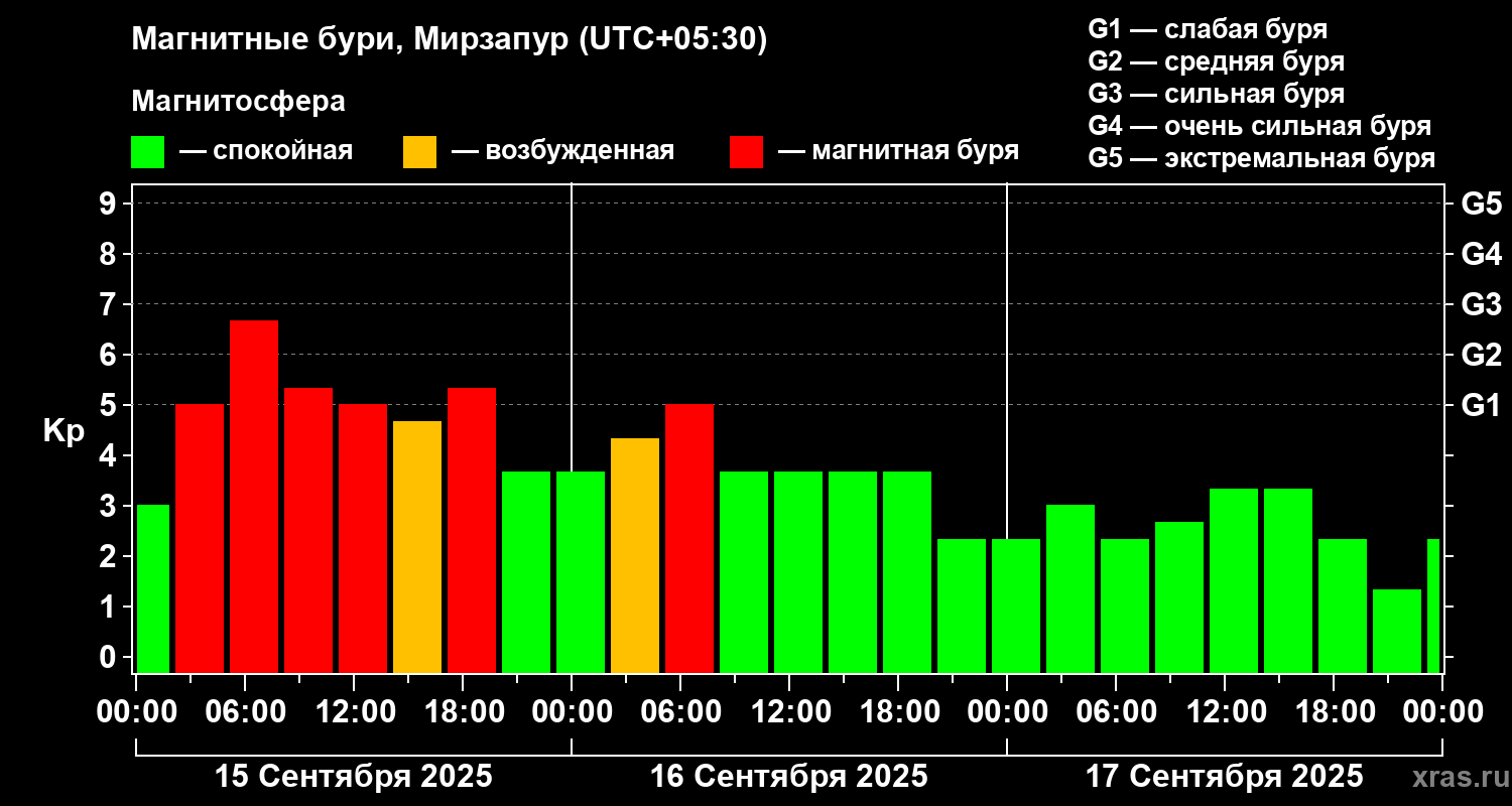 Магнитные бури в Мирзапуре 17 сентября 2025 года